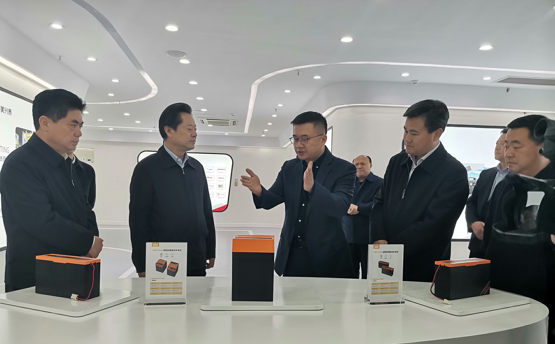在董事长杨昌军的带领下,州委书记虢正贵一行参观了开云官方端网页版登录入口-开云(中国)产品展示厅以及泰和美新能源电芯自动化生产线,详细了解了泰和美电动车电池产品市场规模及市场前景。